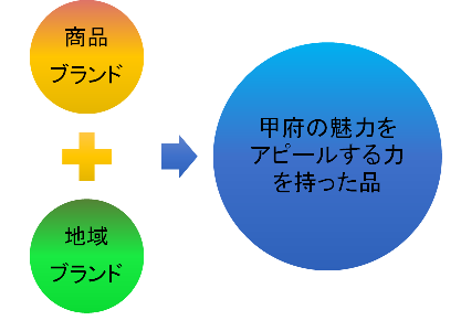 甲府発の商品・サービスのブランド=「商品ブランド」と、甲府イメージのブランド=「地域ブランド」の2つのブランドを融合させ、商品のみならず、観光や甲府市のイメージアップにも貢献できるブランドを目指していきます。